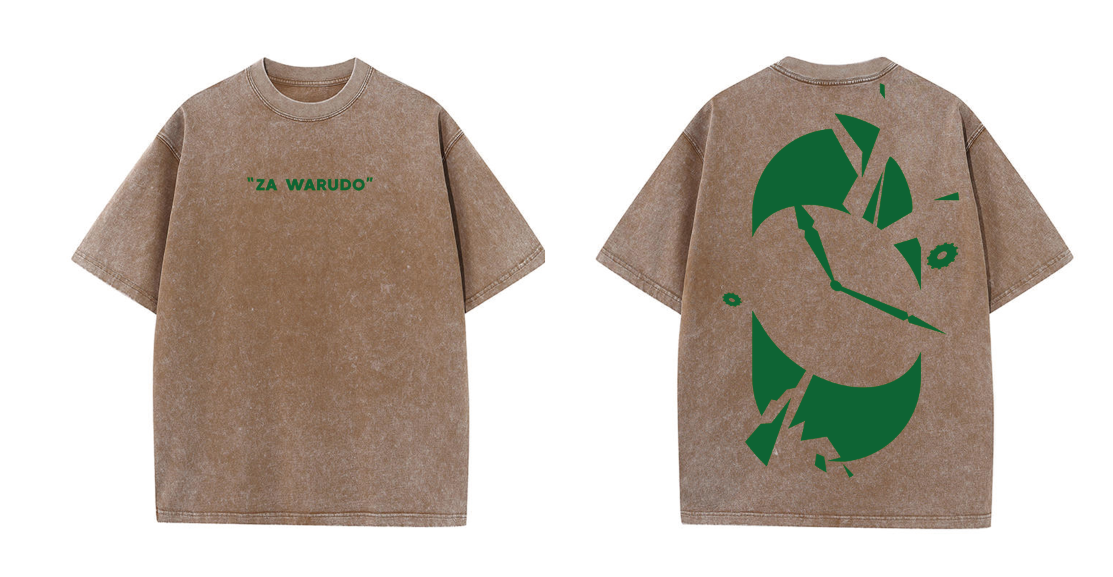 Ez az egyedi Enima designed Za Warudo póló. Minimalista dizájn, amit egyből felismer minden JoJo-fan, de elég letisztult ahhoz, hogy akár melóba, akár suliba felvedd minden aggodalom nélkül.